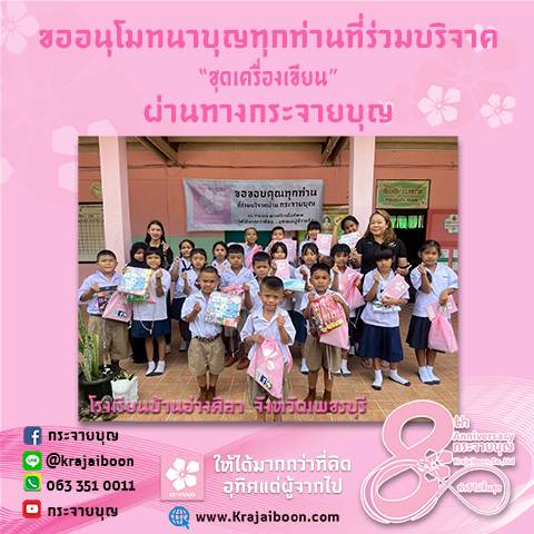 บริจาค "ชุดเครื่องเขียน" มอบให้ โรงเรียนบ้านอ่างศิลา จ.เพชรบุรี