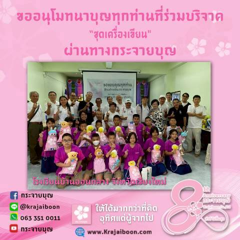 บริจาค "ชุดเครื่องเขียน" มอบให้ โรงเรียนบ้านออนกลาง จังหวัดเชียงใหม่