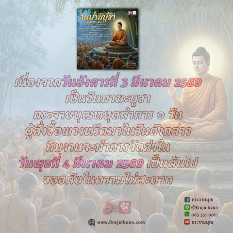 แจ้งหยุดทำการ วันที่ ๓ มีนาคม ๒๕๖๙ "วันมาฆบูชา"